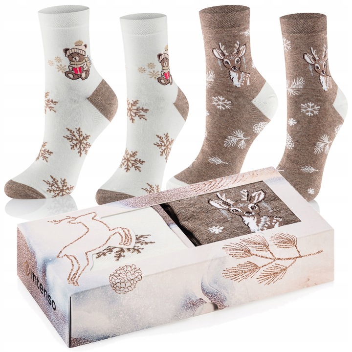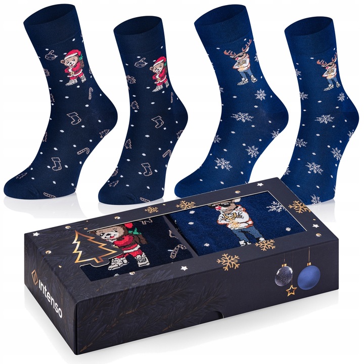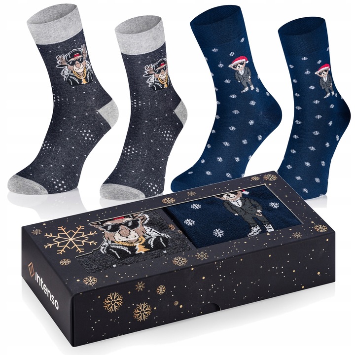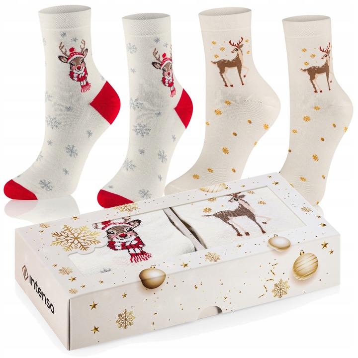 INTENSO Christmas Collection – Eleganckie zestawy świątecznych skarpet idealnych na prezent. Starannie zapakowane, utrzymane w klasycznych, świątecznych kolorach i wzorach, łączą wygodę z efektownym wyglądem. Wybierz zestaw, który doda świątecznego klimatu i sprawi radość obdarowanej osobie.