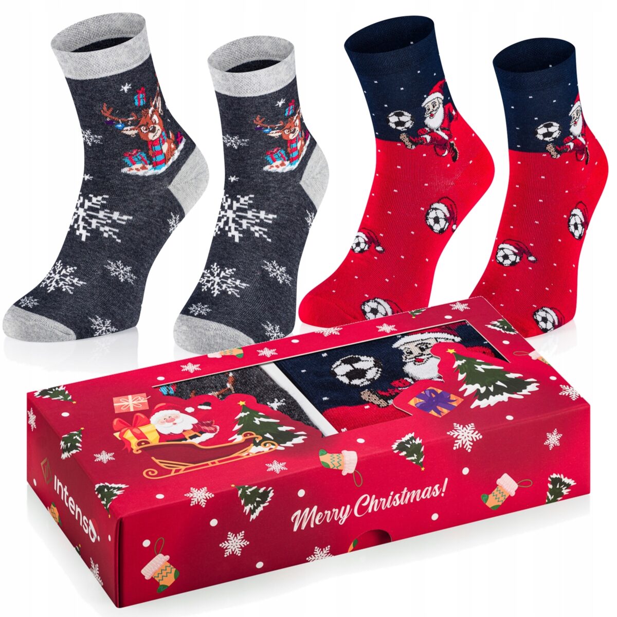 Zestaw 2 pary skarpet chłopięcych Football Santa i Frozen Deer 2-pak w świątecznym pudełku prezentowym Intenso
