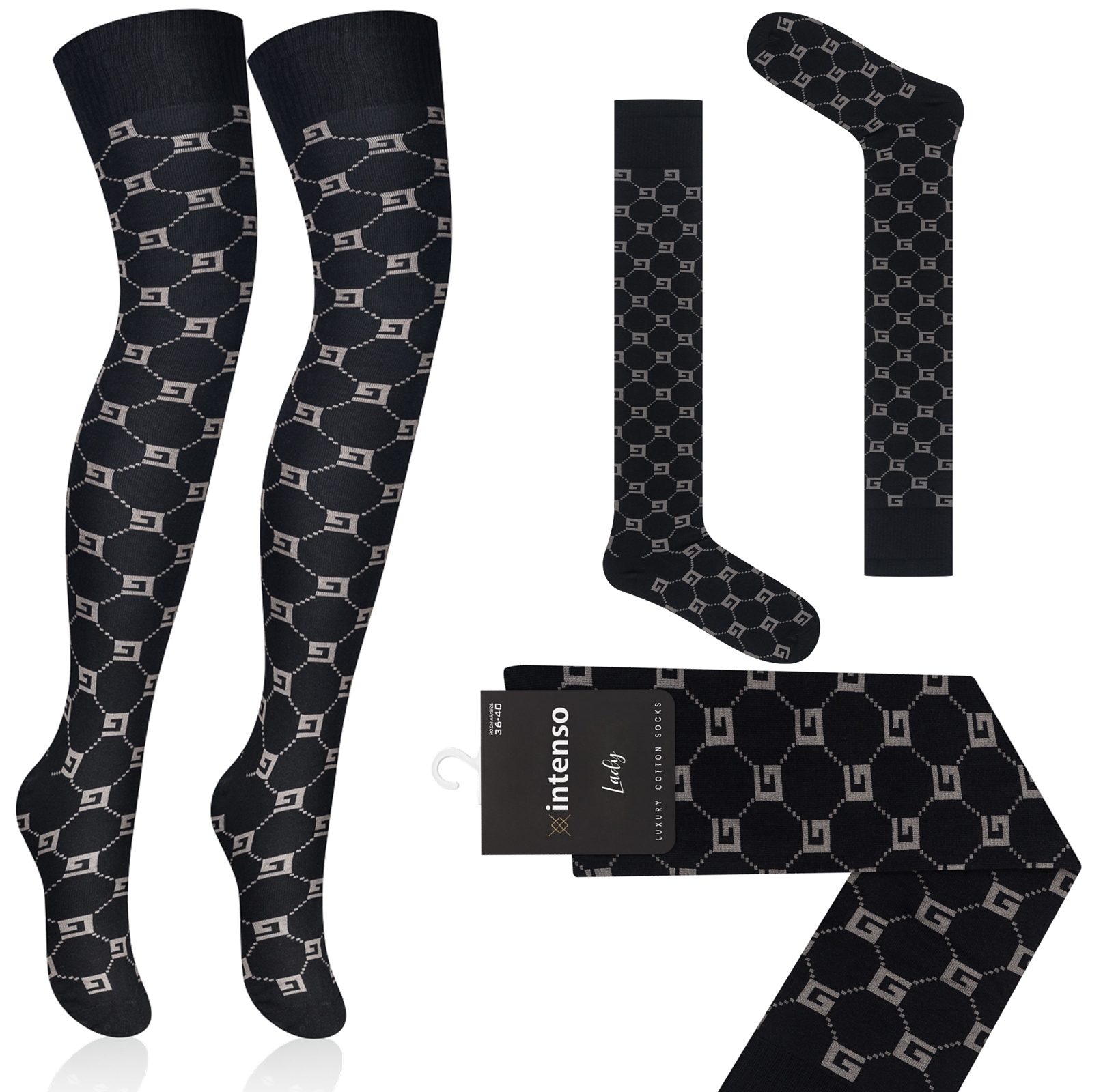 Zakolanówki damskie bawełniane z nowej kolekcji Intenso Luxury wyprodukowane w Polsce z najwyższej jakości surowców przy użyciu nowoczesnej technologii. Zakończone rozciągliwym ściągaczem o specjalnej konstrukcji zapobiegającym zsuwaniu się, a przy tym nie powodującym ucisku.