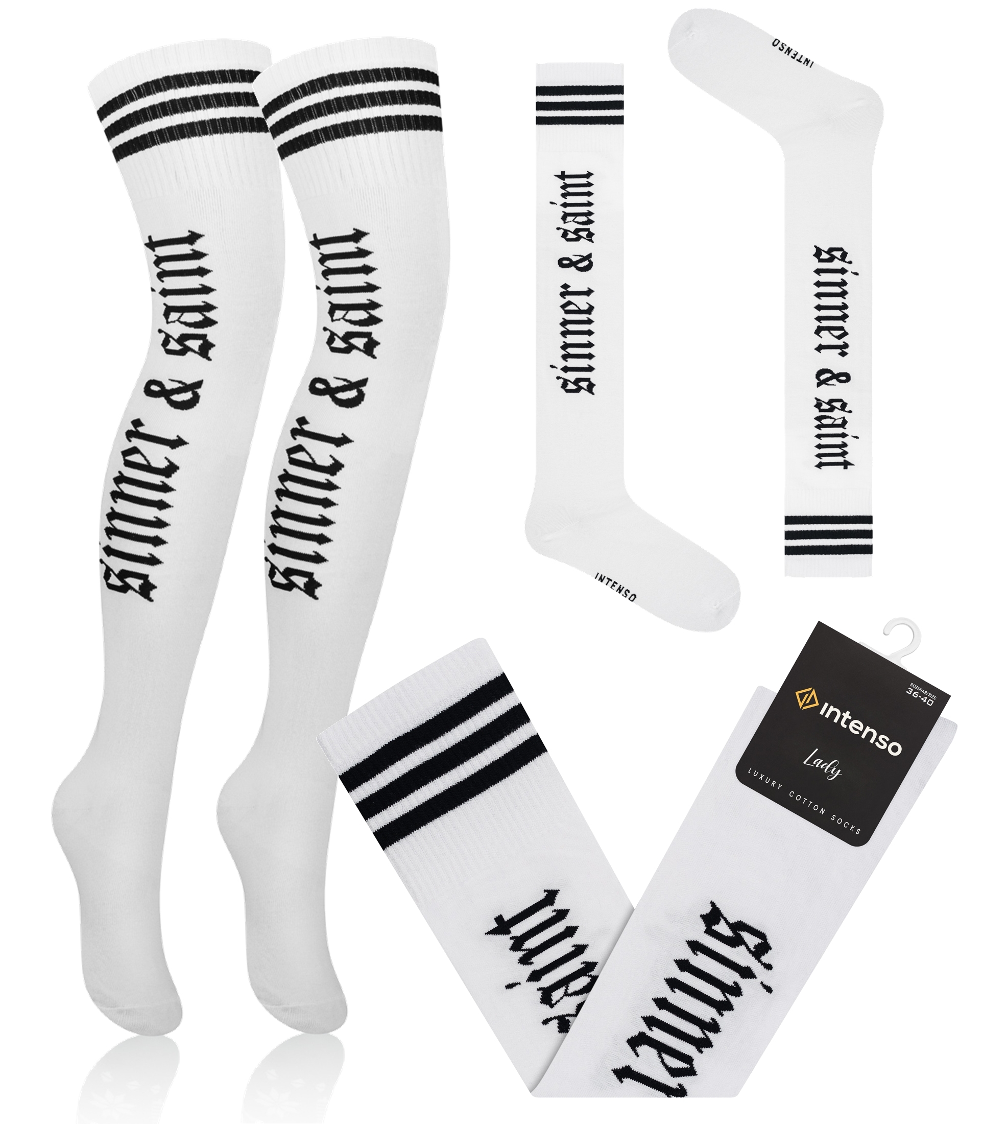 Zakolanówki damskie bawełniane z nowej kolekcji Intenso Luxury wyprodukowane w Polsce z najwyższej jakości surowców przy użyciu nowoczesnej technologii. Zakończone rozciągliwym ściągaczem o specjalnej konstrukcji zapobiegającym zsuwaniu się, a przy tym nie powodującym ucisku.