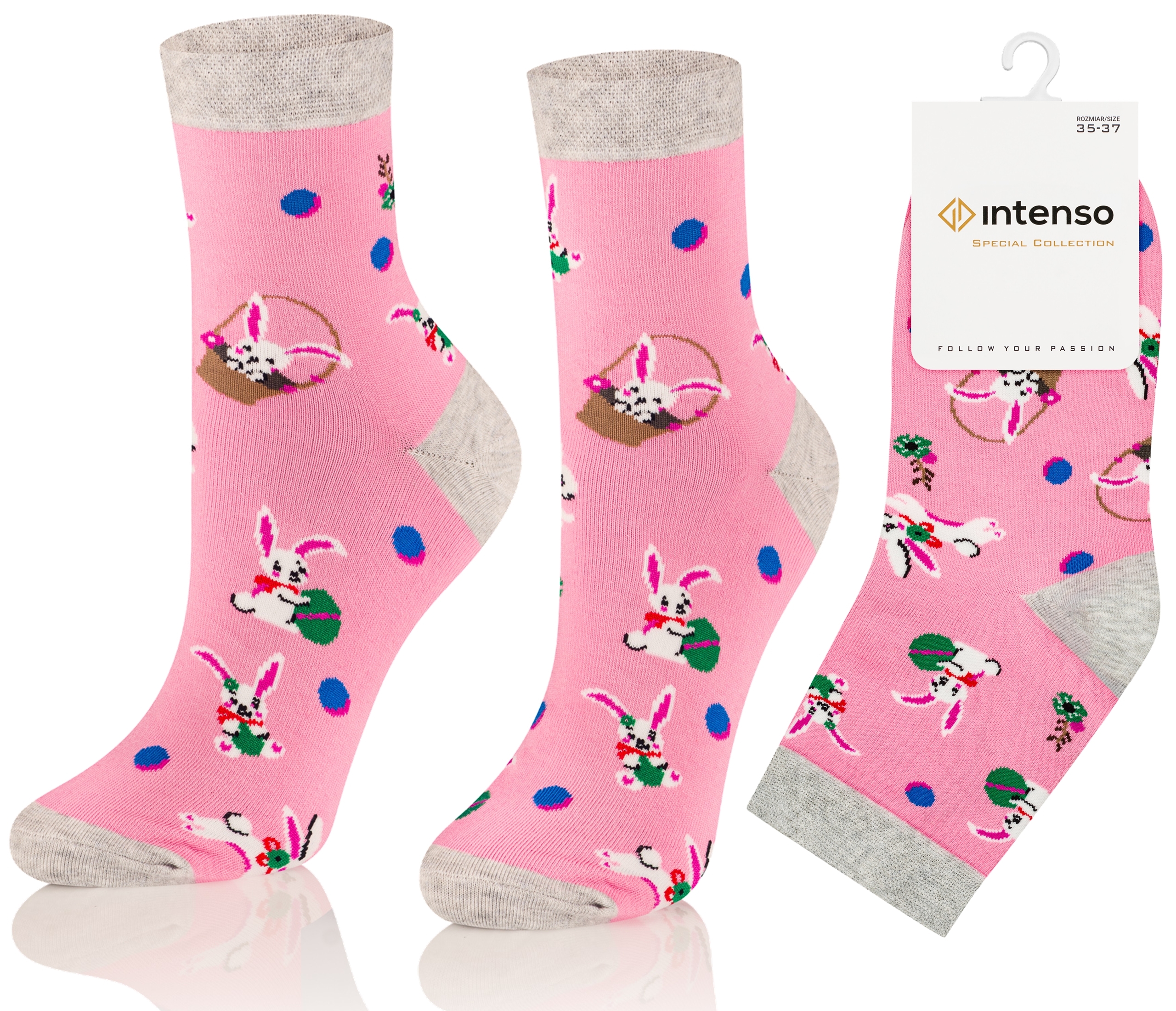 Skarpetki damskie okazjonalne z nowej linii Intenso Special Collection wyprodukowane z najwyższej jakości surowców, według nowoczesnych technologii. Oferujemy szeroką paletę kolorów i wzorów, które z pewnością przypadną do gustu nawet najbardziej wymagającym klientom. Nasze skarpetki będą również świetnym pomysłem na walentynkowy prezent dla bliskiej osoby. W całości wyprodukowane w Polsce we współpracy z z influencerami i blogerami odzieżowymi.