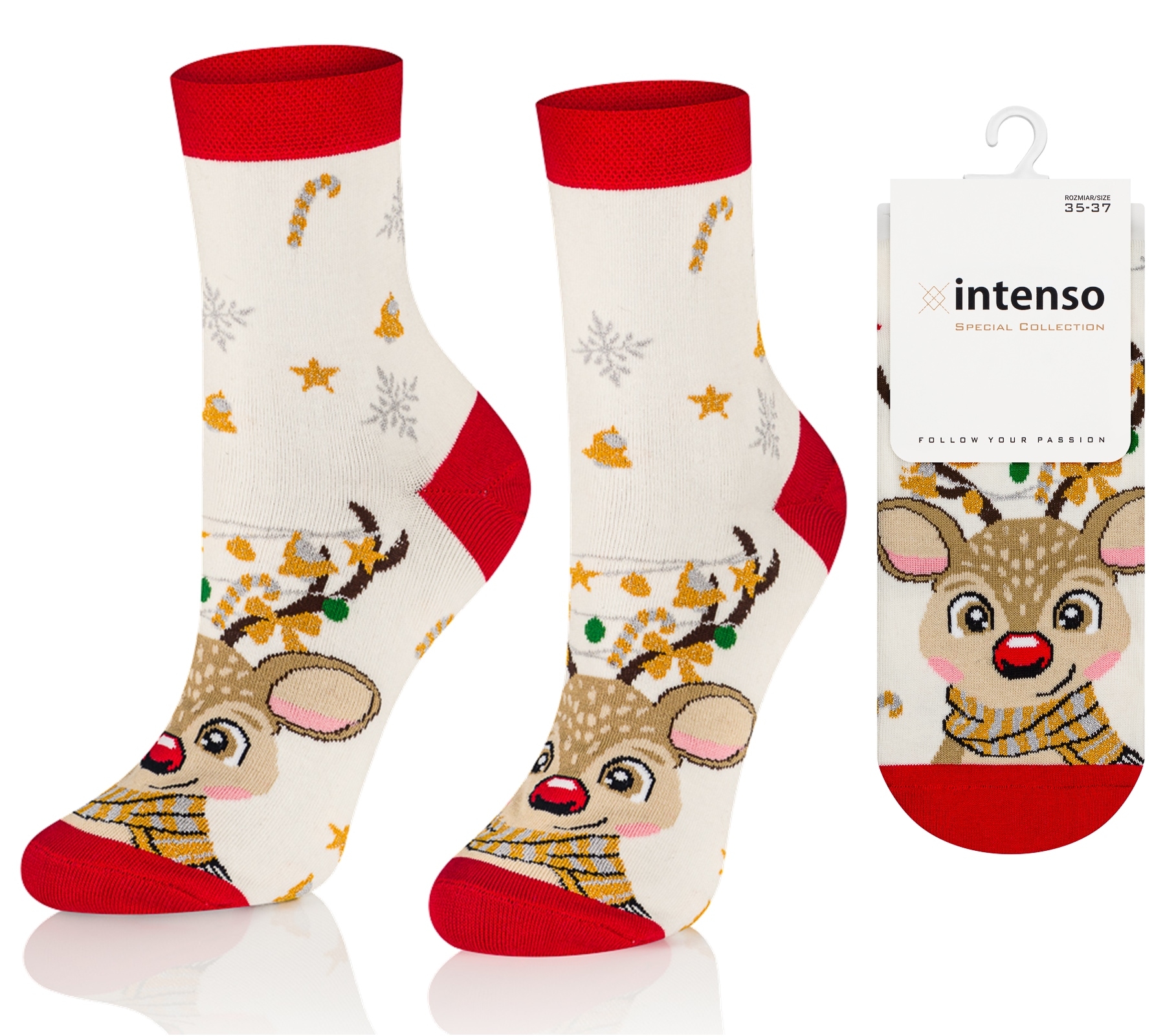Skarpetki w świąteczne wzory wykonane z najwyższej jakości bawełny czesanej z nowej kolekcji Intenso Special Collection 0365. Skarpetki damskie Intenso z kolekcji świątecznej wyprodukowane przy użyciu nowoczesnych technologii, przy współudziale blogerów modowych i influencerów.