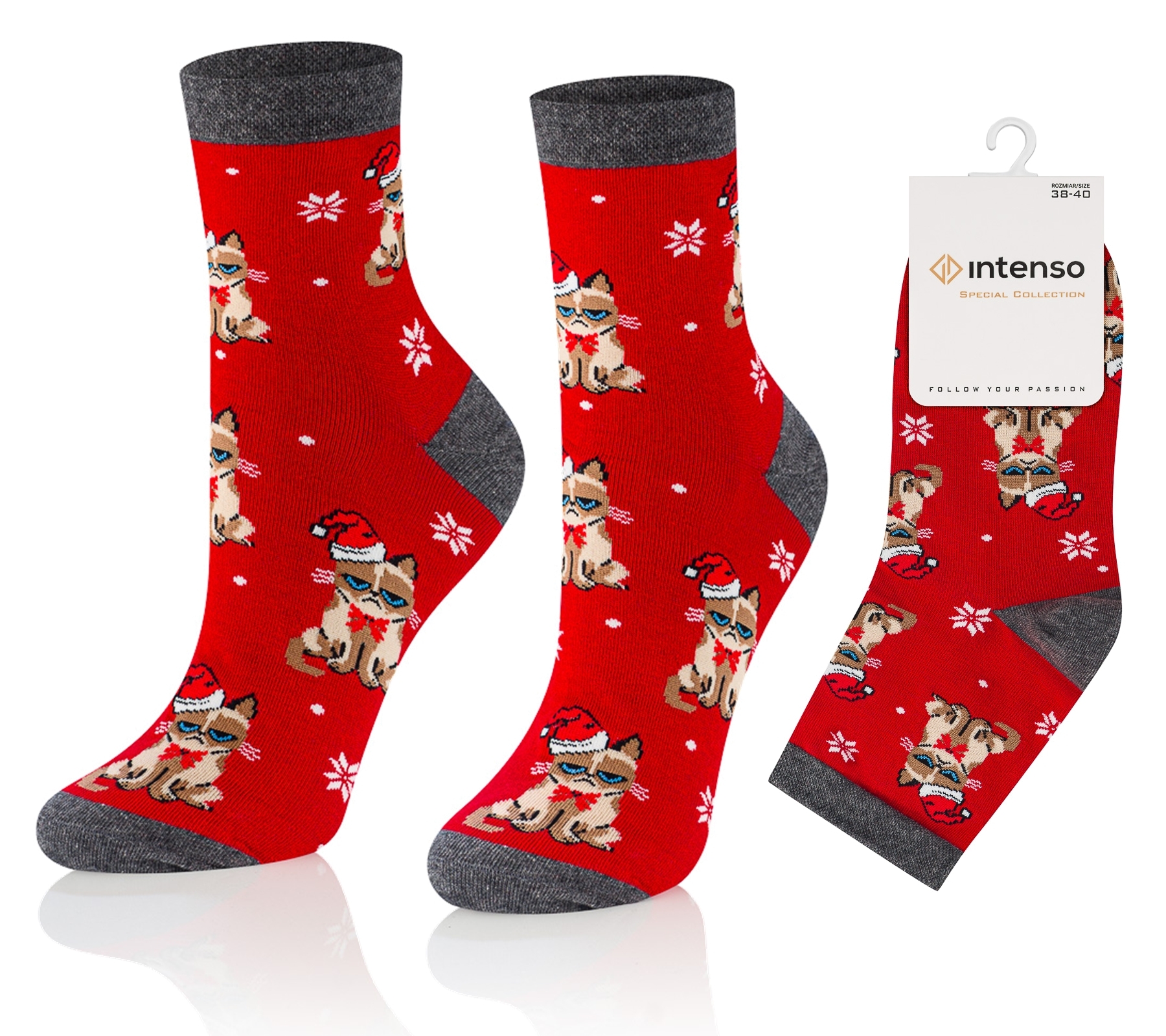 Oferujemy szeroką paletę kolorów i wzorów w renifery, mikołaje, oraz symbole zimowe i świąteczne, które z pewnością przypadną do gustu nawet najbardziej wymagającym klientom. Nasze skarpetki będą również świetnym pomysłem na prezent, który wprowadzi Cię w magiczny klimat świąt. Skarpety Intenso od początku do końca zaprojektowane i produkowane są produkowane w Polsce.