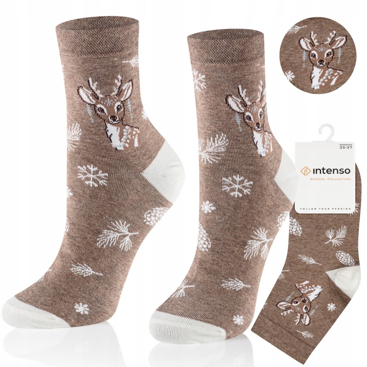 • Skarpetki damskie Intenso z kolekcji świątecznej wyprodukowane przy użyciu nowoczesnych technologii, przy współudziale blogerów modowych i influencerów.