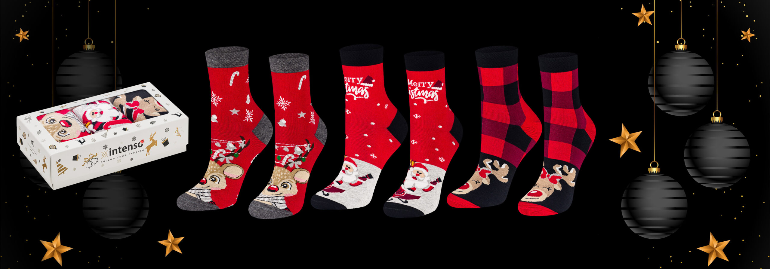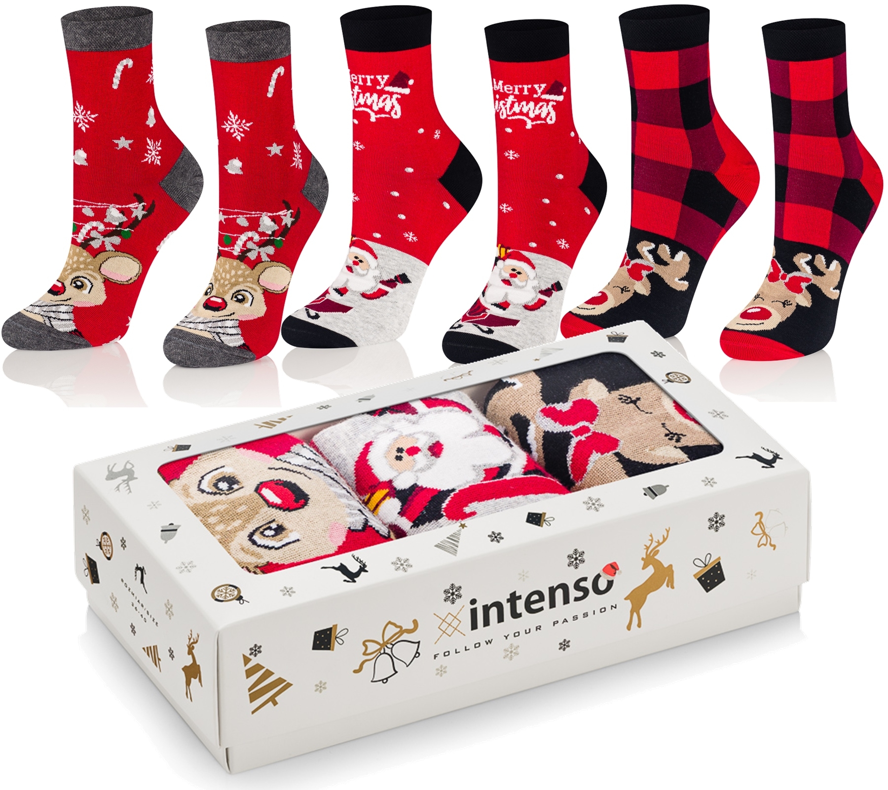 Skarpetki w świąteczne wzory wykonane z najwyższej jakości bawełny czesanej z nowej kolekcji Intenso Special Collection 0365.