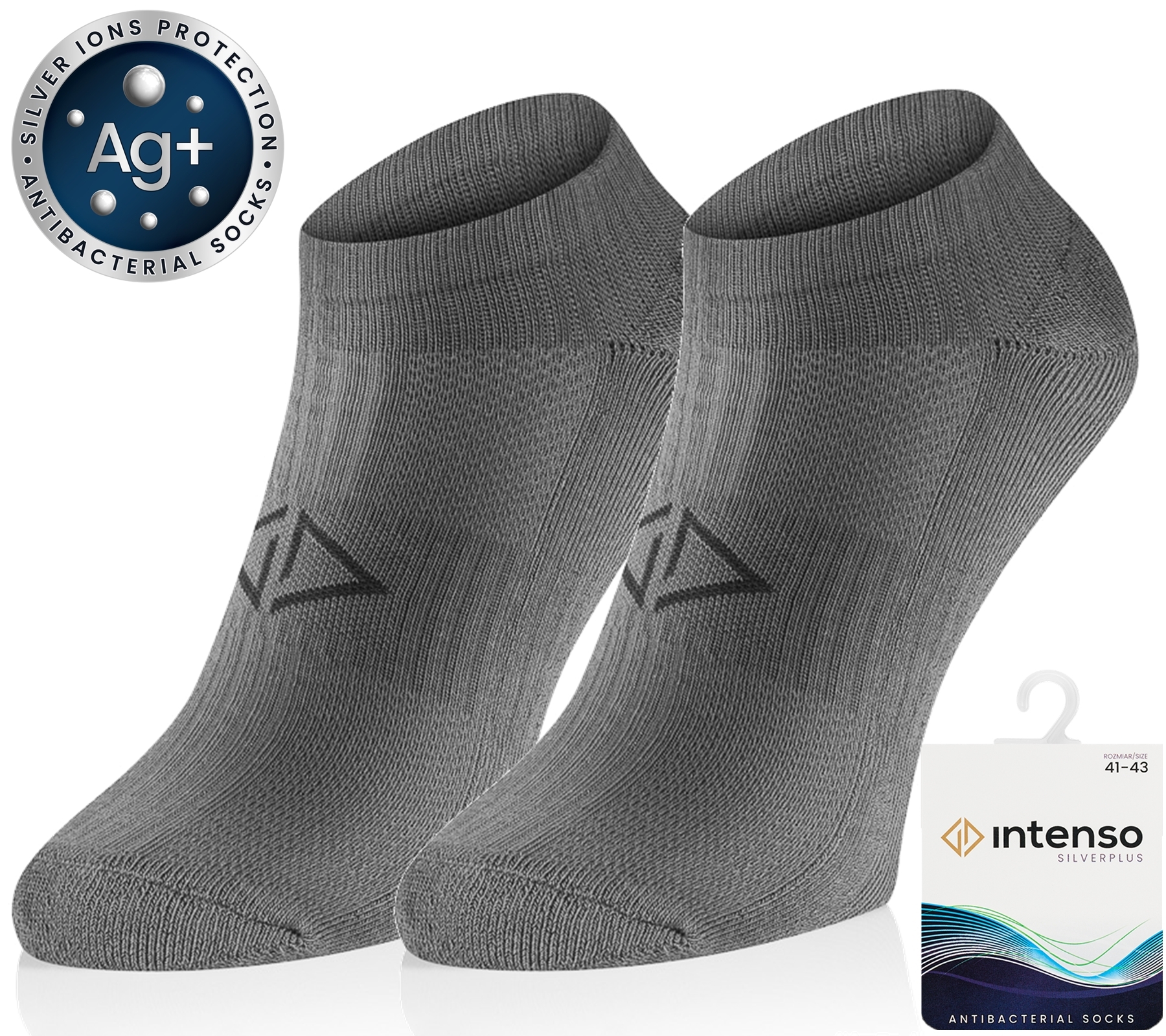 Intenso Silverplus – Nowa kolekcja stopek sportowych antybakteryjnych z jonami srebra. Posiadają właściwości antyzapachowe, antybakteryjne i termoaktywne. Dzięki zawartości jonów srebra zapobiegają rozwojowi flory bakteryjnej i pozostawiają skórę suchą i świeżą przez długi czas.