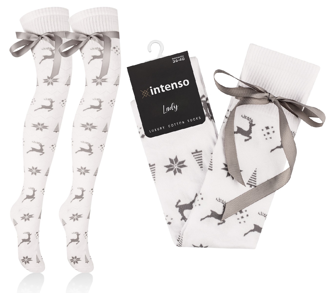 Zakolanówki bawełniane Intenso to zmysłowa propozycja dla kobiet, pasująca do każdej stylizacji i zawsze przyciągająca uwagę. Efektowna aplikacja w postaci długiej kokardki dodaje uroku i zapewnia ekscytujący, sexy wygląd. Idealnie pasują do szortów, spodenek, krótkich spódniczek, będą też świetną alternatywą dla rajstop, a w połączeniu z kozakami stworzą spektakularny design.