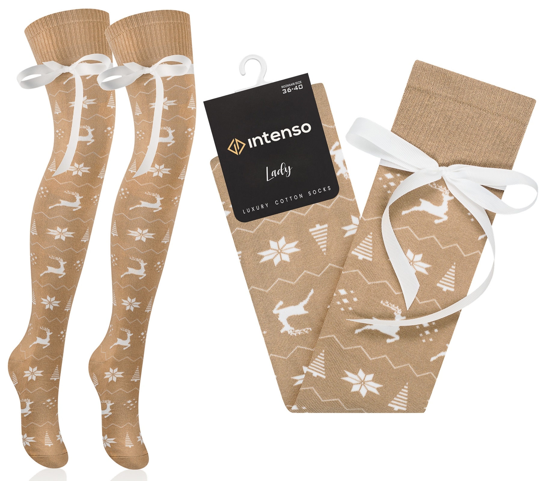 Zakolanówki bawełniane Intenso to zmysłowa propozycja dla kobiet, pasująca do każdej stylizacji i zawsze przyciągająca uwagę. Efektowna aplikacja w postaci długiej kokardki dodaje uroku i zapewnia ekscytujący, sexy wygląd. Idealnie pasują do szortów, spodenek, krótkich spódniczek, będą też świetną alternatywą dla rajstop, a w połączeniu z kozakami stworzą spektakularny design.