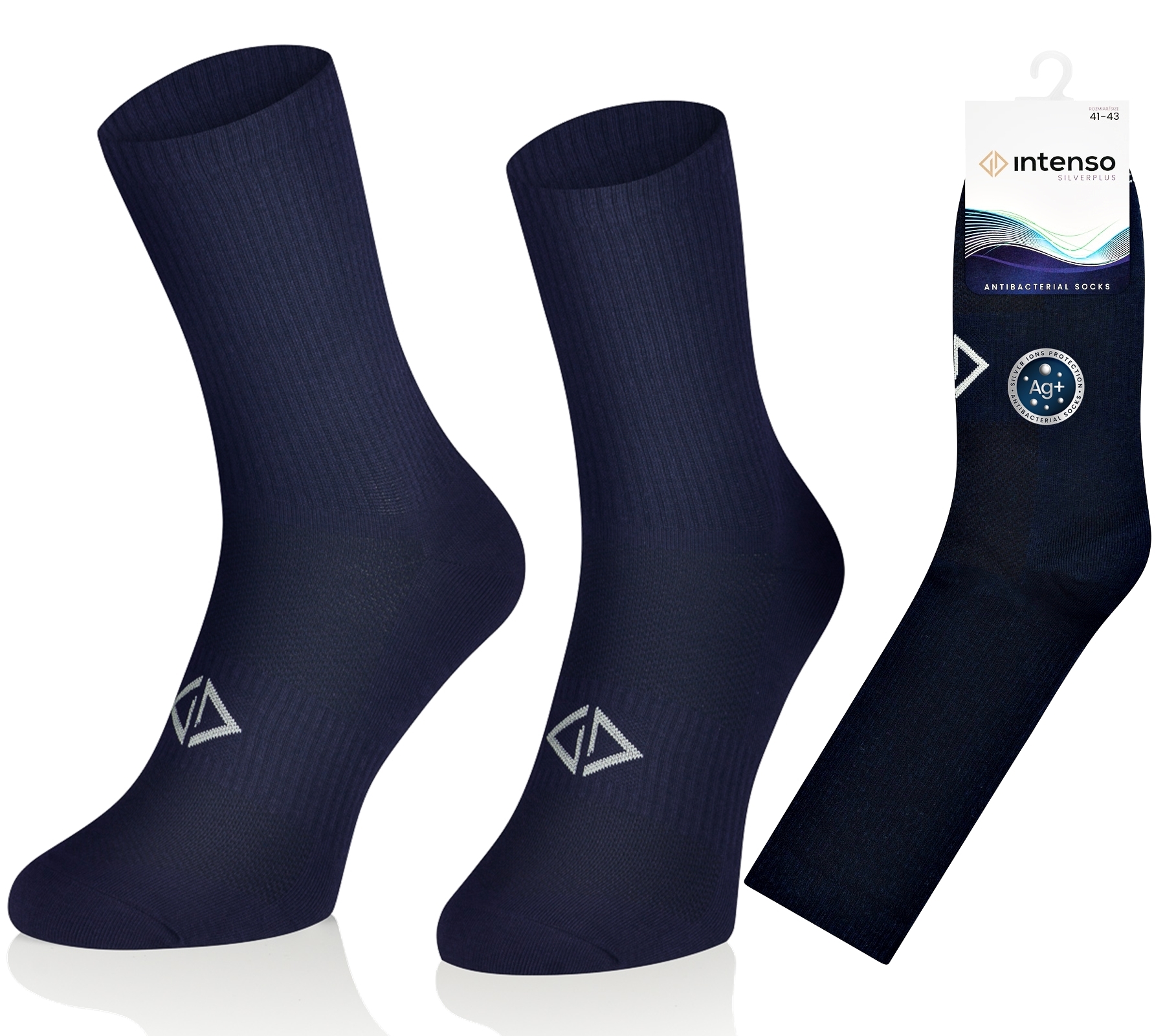 Intenso Silverplus – Nowa kolekcja sportowych skarpet antybakteryjnych z jonami srebra. Posiadają właściwości antyzapachowe, antybakteryjne i termoaktywne. Dzięki zawartości jonów srebra zapobiegają rozwojowi flory bakteryjnej i pozostawiają skórę suchą i świeżą przez długi czas.