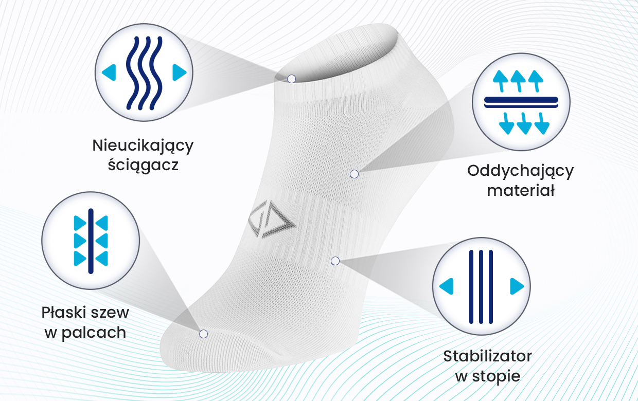 Siateczka wentylacyjna i stabilizator w stopie zapewniają komfort i wygodę użytkowania. Idealne do uprawiania sportu, oraz do użytku codziennego.
