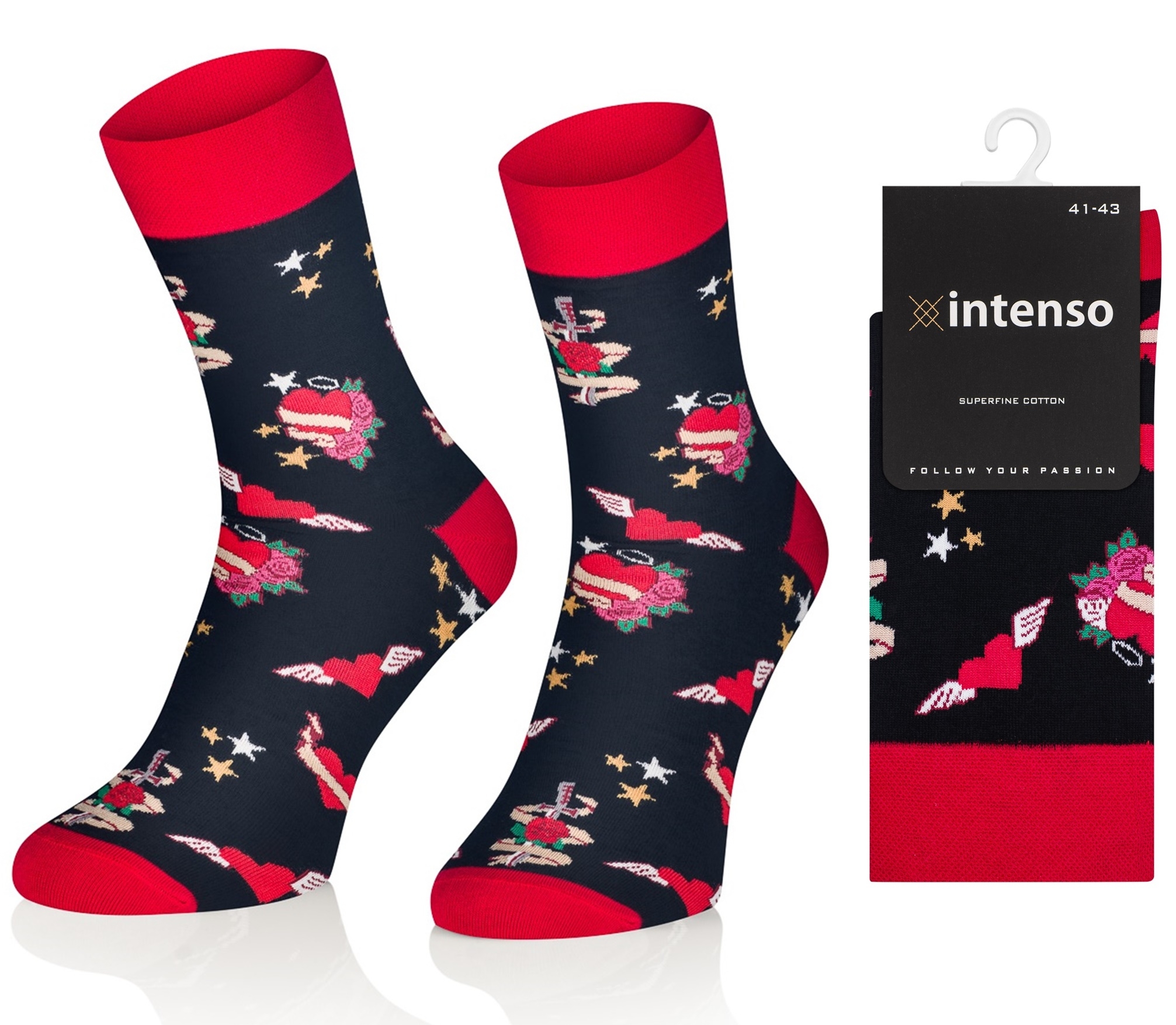 Linia skarpet walentynkowych wykonanych z najwyższej jakości bawełny czesanej. Skarpetki z kolekcji walentynkowej wyprodukowane przy użyciu nowoczesnych technologii, zapakowane w efektowne, prezentowe pudełko Intenso.