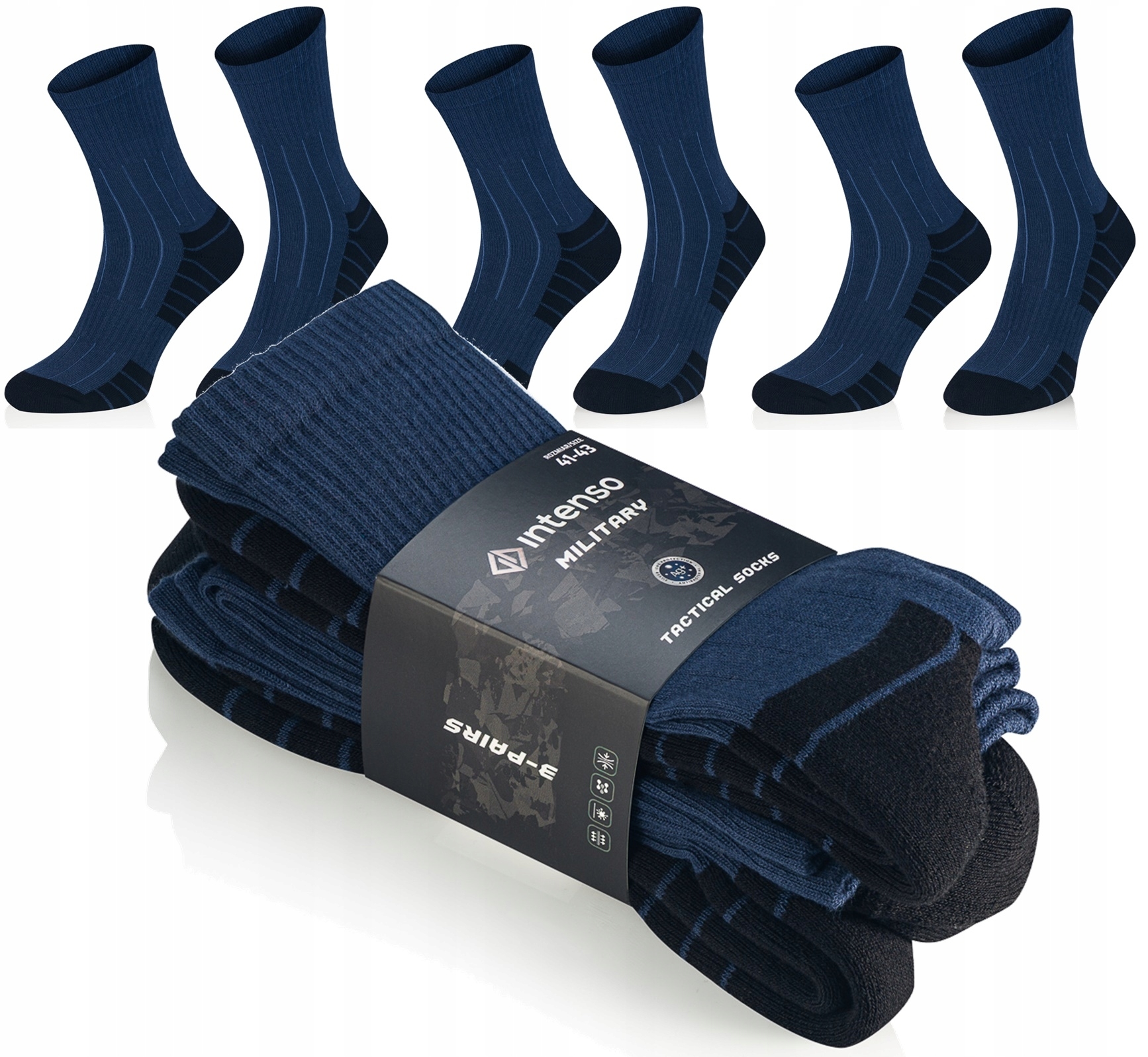 Intenso Military – Nowa kolekcja skarpet taktycznych przeznaczonych dla służb mundurowych (wojsko, straż pożarna, policja, straż miejska, służby ochrony, służba więzienna itp.) antybakteryjnych z jonami srebra o zwiększonej wytrzymałości. Posiadają właściwości antyzapachowe, antybakteryjne i termoaktywne. Pozwalają na wielogodzinne komfortowe użytkowanie w trudnych warunkach z zachowaniem bezpieczeństwa i wygody.