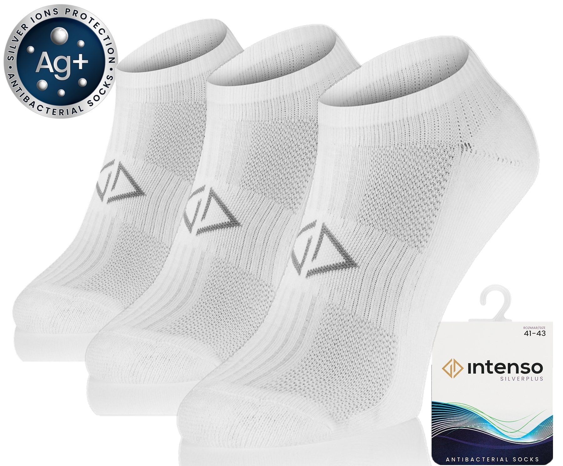 Intenso Silverplus – Nowa kolekcja stopek sportowych antybakteryjnych z jonami srebra. Posiadają właściwości antyzapachowe, antybakteryjne i termoaktywne. Dzięki zawartości jonów srebra zapobiegają rozwojowi flory bakteryjnej i pozostawiają skórę suchą i świeżą przez długi czas.