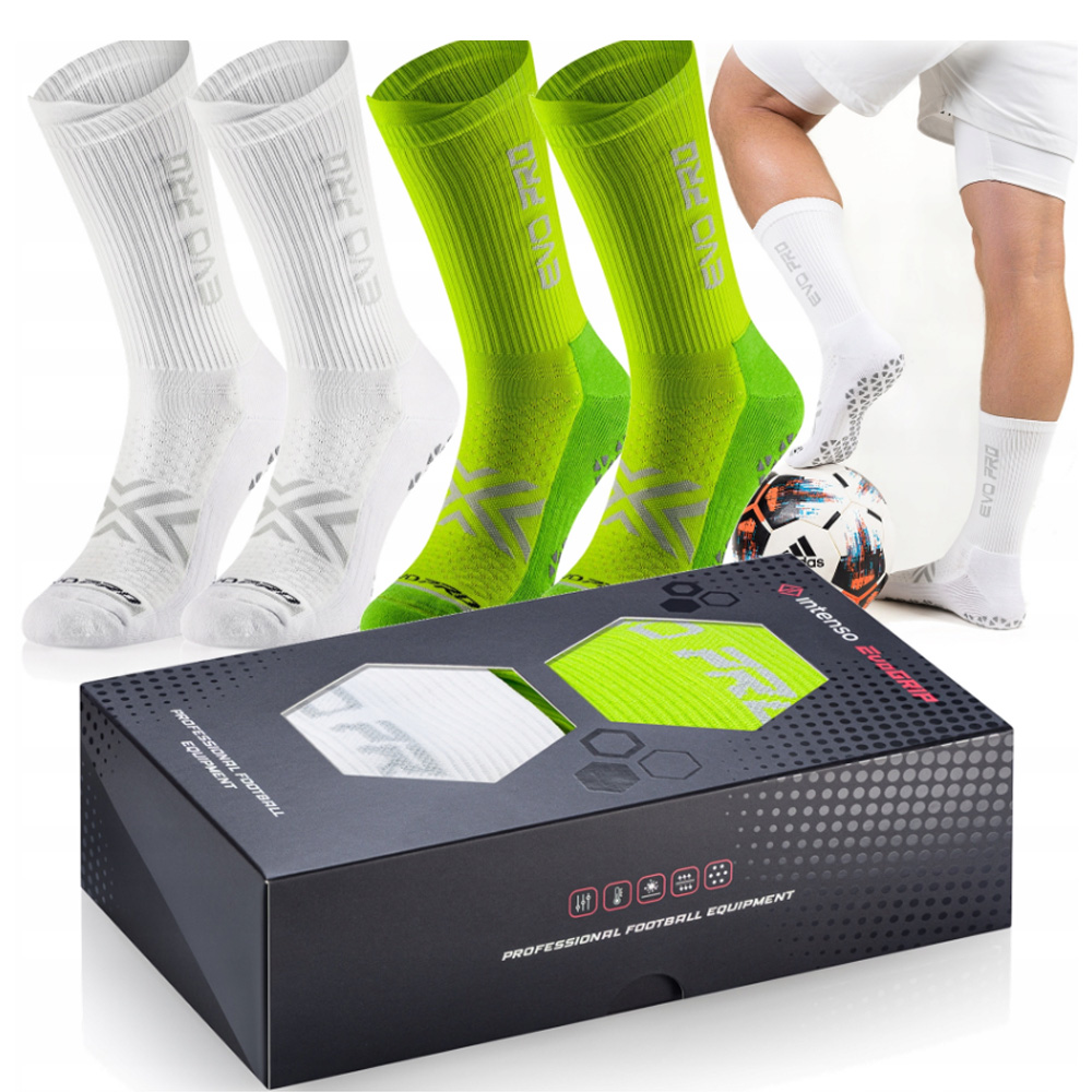 Super zestaw 2x skarpety antypoślizgowe niezbędne dla każdego piłkarza, zarówno amatora jak i profesjonalisty. Produkty zapakowane w efektowne pudełko Intenso EvoGRIP wielokrotnego użytku, idealny pomysł na prezent dla wszystkich aktywnych miłośników futbolu.